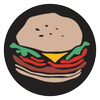Close-up of a cheeseburger with lettuce, pickles, onions, two beef patties, melted cheese, ketchup, mustard, and a bun.